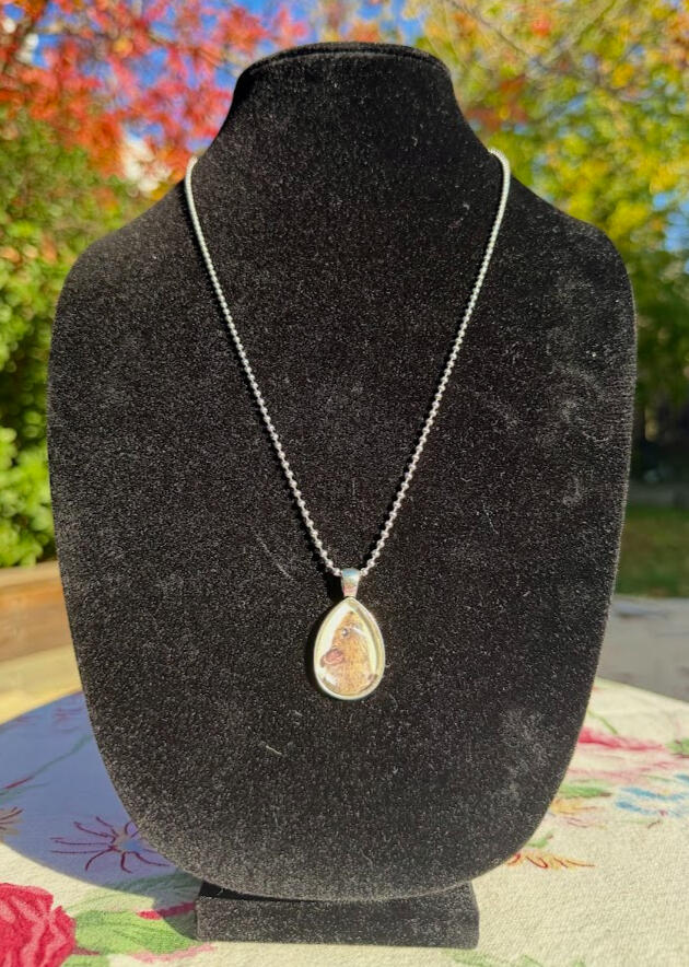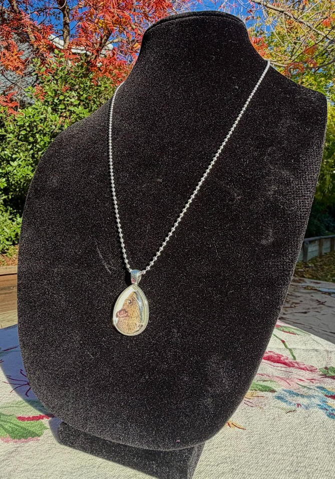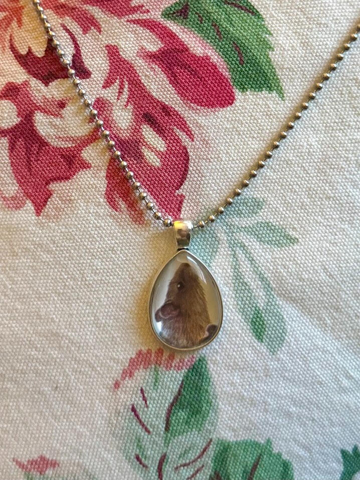 Rat Silver Teardrop Pendant. 22" beaded non-adjustable chain. 1"