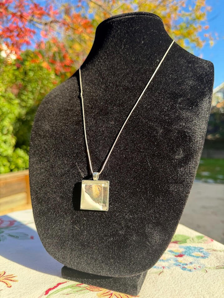Badger Silver Square Pendant. 24" non-adjustable chain. 1" x 1"
