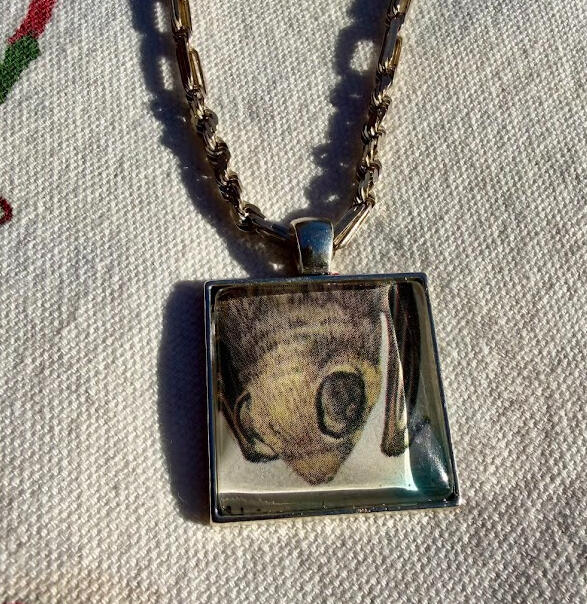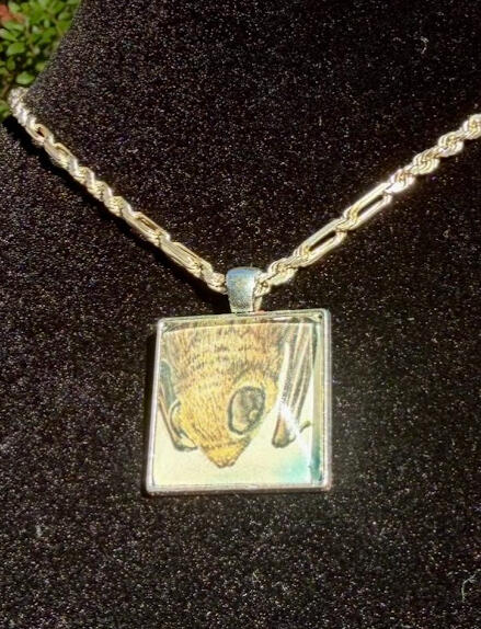 Bat Silver Square Pendant. Non-adjustable 18.5" chain. 1" x 1"