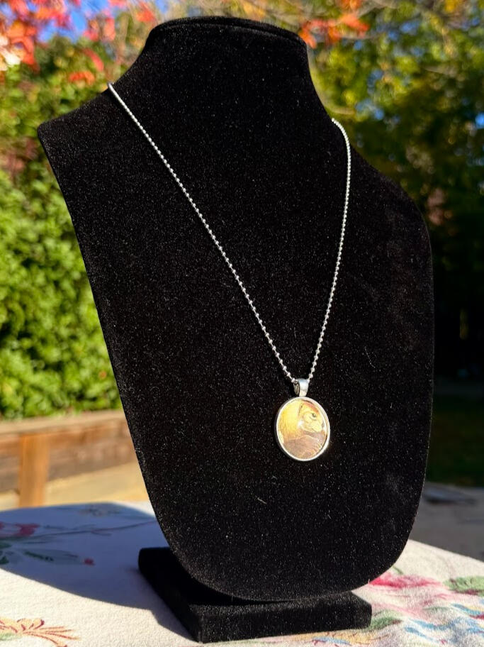 Otter Silver Circle Pendant. 11.5" beaded non-adjustable chain. 1"