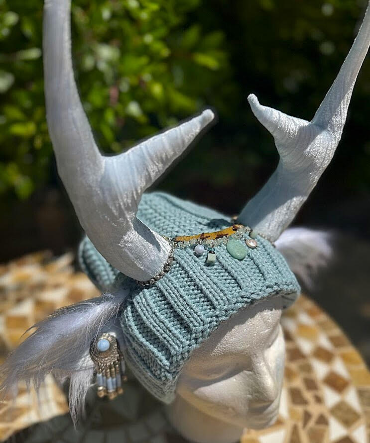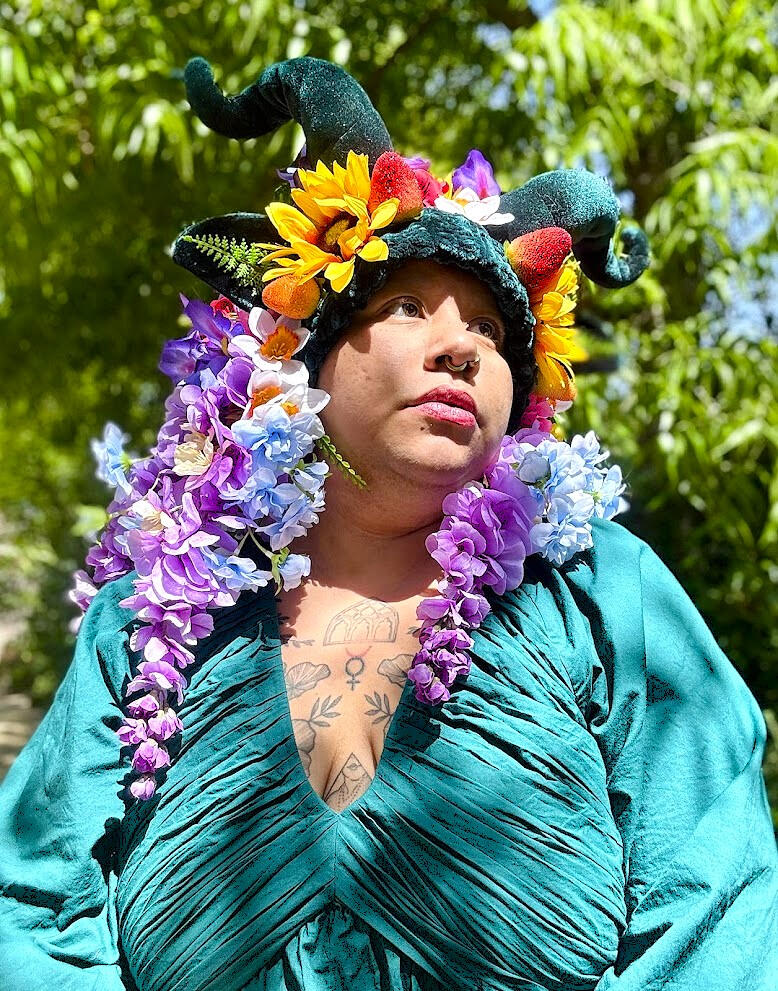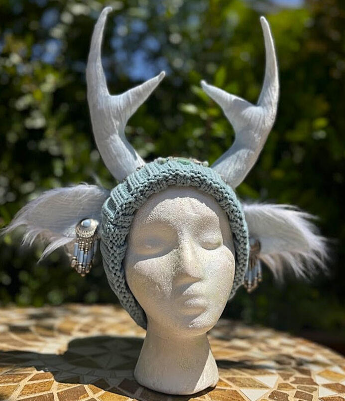 As a grief walker and death doula, Circe marries themes of death and whimsy within their creations and enjoys the dance and coexistence between the two. Being a harm reductionist at heart and advocate for decolonization in all forms, they frequently call upon and pay homage to their mexican and filipino roots, whose folklore and mythos grounds their storytelling. Whether multimedia canvas art or eccentric headpiece, each piece has its own personality and aesthetic.