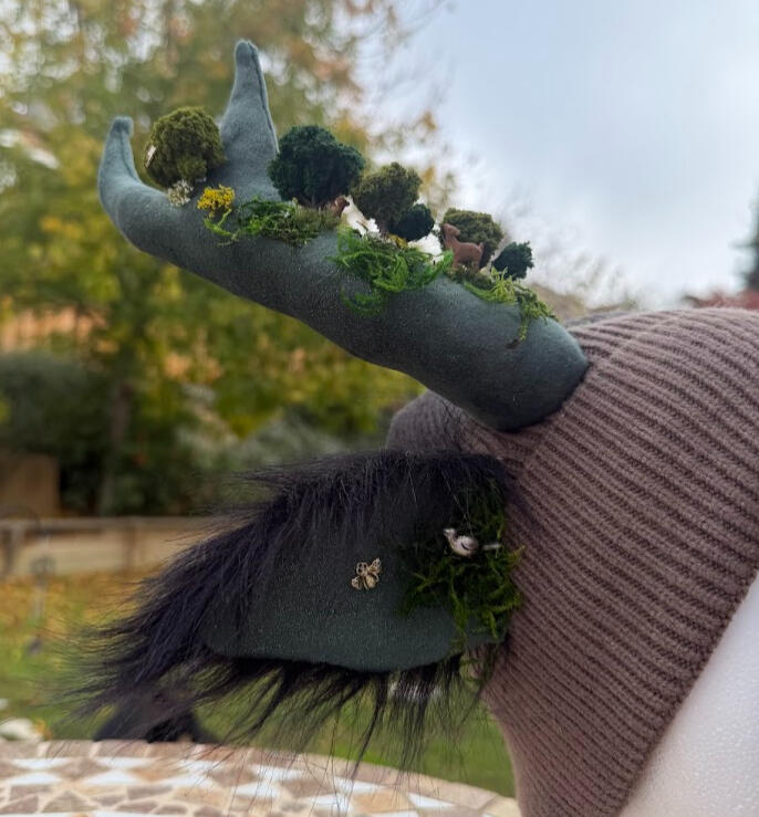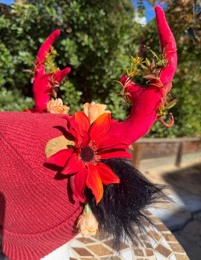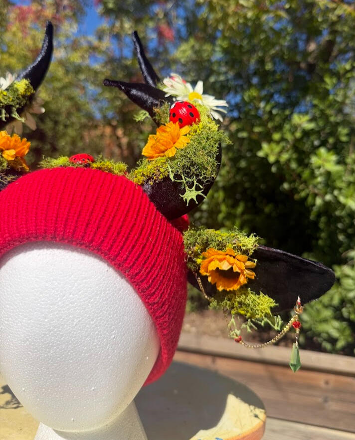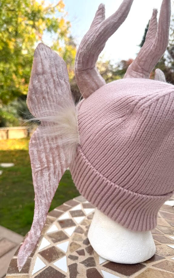 I've always had an affinity for horned & hooved animals - especially deer. As someone who doesn't feel very human in general, I wanted to create a way to feel more expressive and euphoric in my skin. My faun and antler beanies feel not only magical but comfy and cozy for sensory-sensitive folks like myself. I'm grateful that these creations have have made their way to others who feel the same way in this world.
