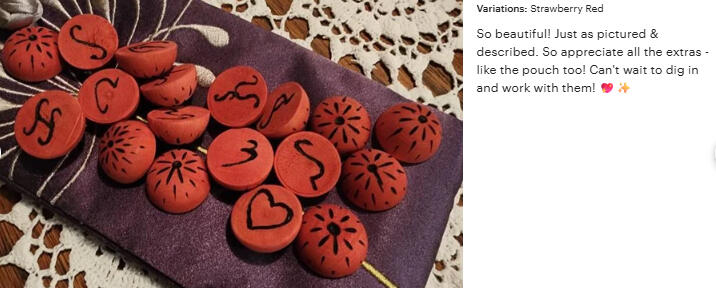 I'd love to hear thoughts about how folks would engage with these runes -- the power of the craft is what you bring to it!To order your own set, fill out the order form on the "How to Order" page. i.e, "baybayin runes, fern frond pattern, blue dye" "baybayin runes, plain wooden disc," etc.