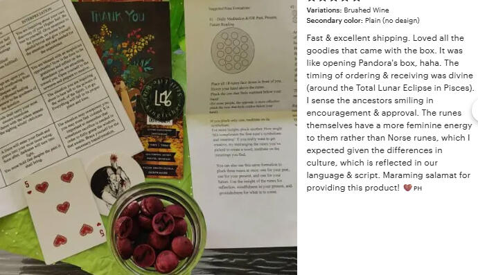 As a pagan and witch myself, I love the Elder Futhark Runes, Tarot decks, and Oracle cards of all kinds. Yet, I felt something missing -- something to connect me further to my ancestors. In my research leading me to many scholars, historians, and storytellers of pre-colonial Philippines, I was motivated to create something special for my communities near and far.I hope this sparks more curiosity and conversation about the Baybayin characters as a divining instrument and tool of personal intuition. I am in no way claiming to be a Baybayin expert; I advocate for the rejuvenation and preservation of these beautiful pre-colonial cultures and histories.Feel free to also check out my massive google doc full of more witchy/pagan/animist resources for Pin@y folks. It is an ongoing list of materials and authentic sources. Have something to add to it? Email me!