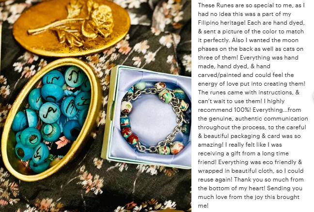 There are two style options for runes: birchwood half-domes or flat wooden discs. The Baybayin characters are woodburned on one side. I can paint, dye, and/or woodburn designs on the blank side at your request.See below for examples-