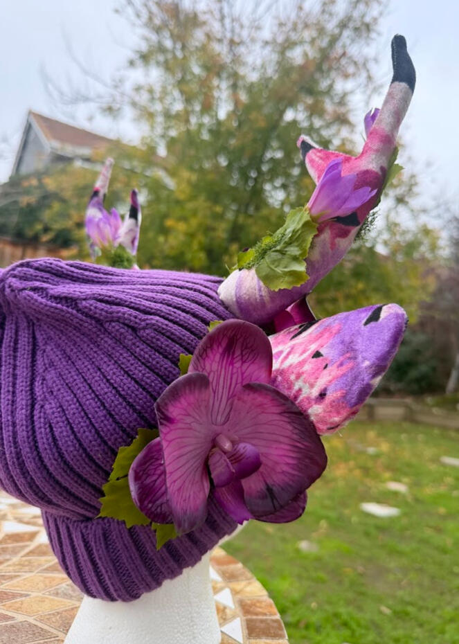 Lilac Bloom - Mini Mane Faun Beanie - $75