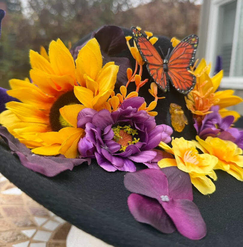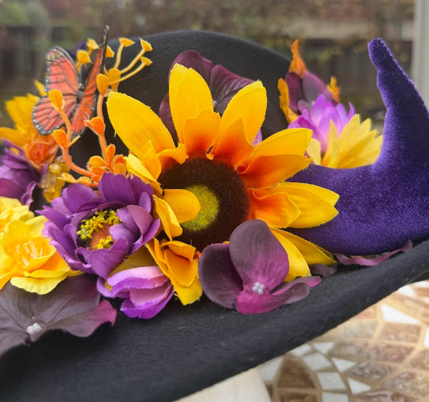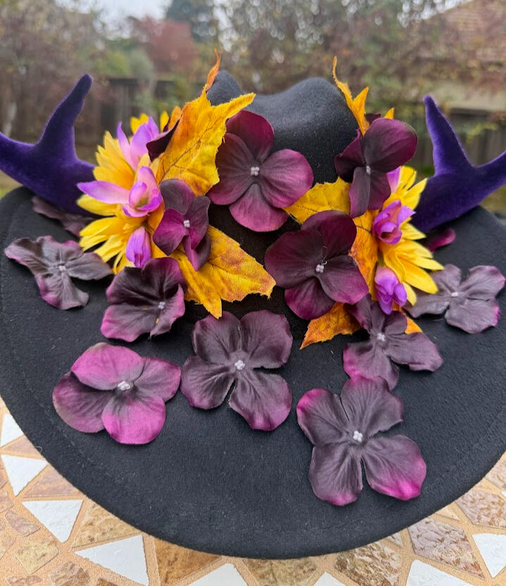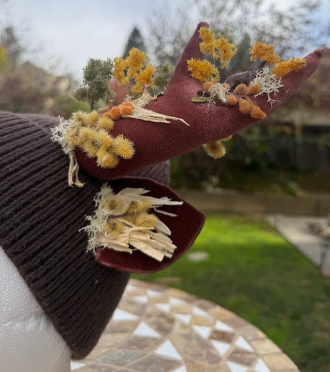 I do my best to upcycle from local thrift and hospice stores-- hat bases, faux decorations, beanies, velvet, etc.