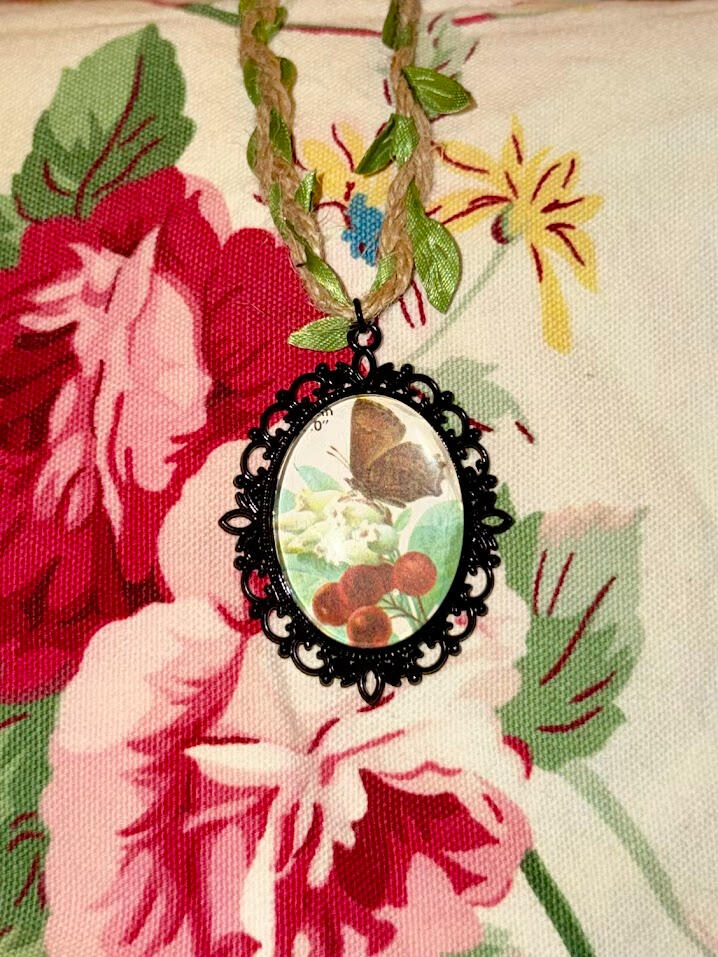 Butterfly Twine Necklace. 2" pendant. 20" twine length w/ adjustable chain for optional extension. $30